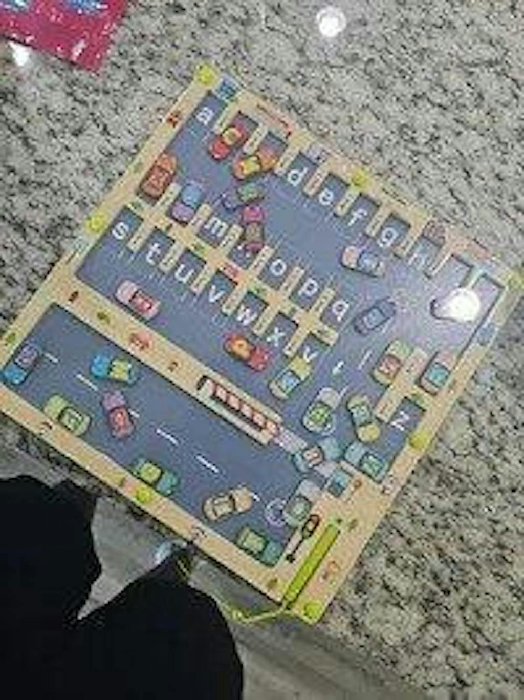 - Contents: 1 wooden board with colored cars & magnetic pen